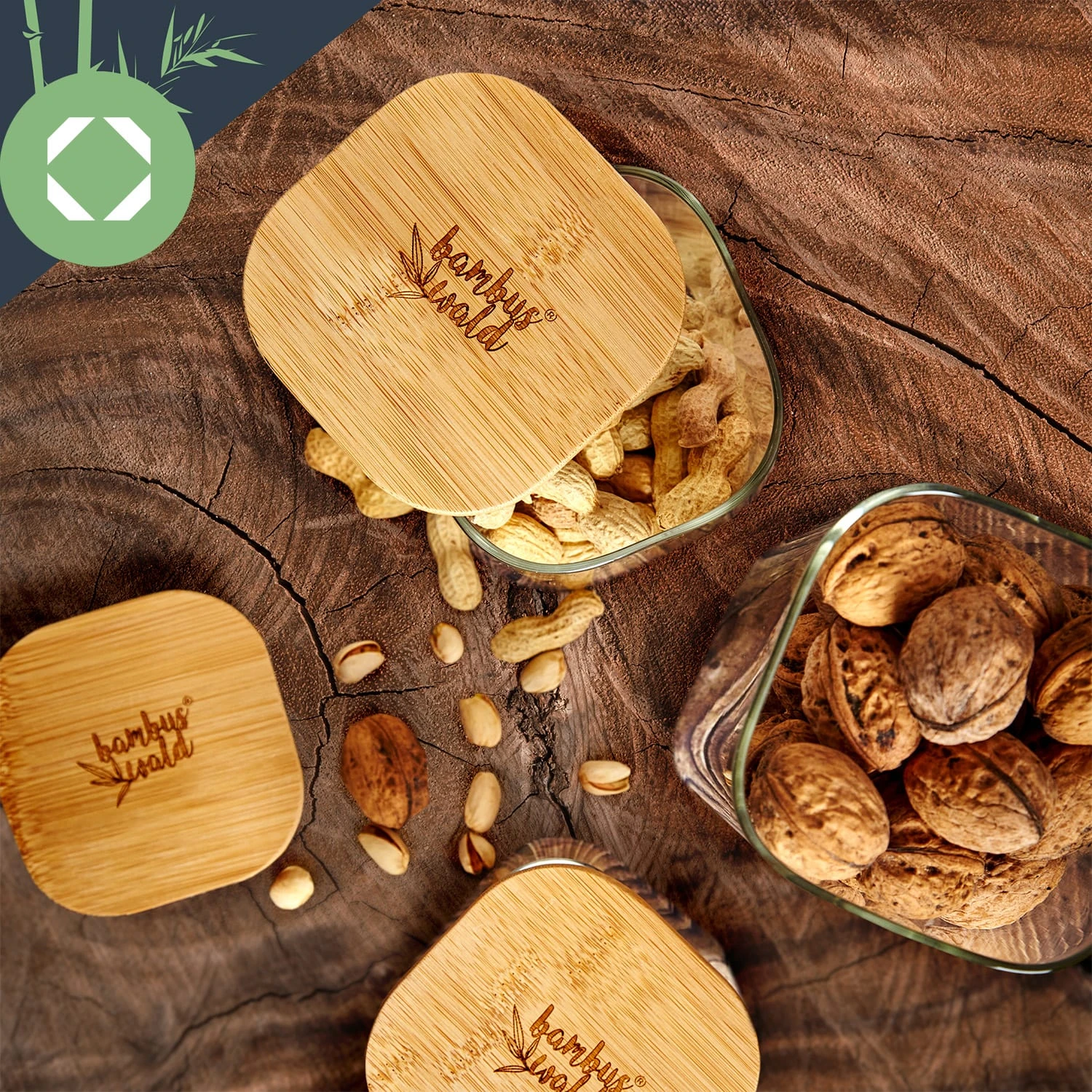 - eckiges Vorratsglas mit Bambusdeckel