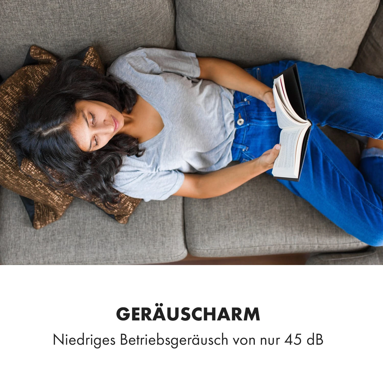 Drei verschiedene Windstärken mit NatureWind Function sorgen mit einem Luftdurchsatz von 222 m³/h für punktgenaue Erfrischung als Ventilator. Die zuschaltbare Oszillation fächert durch Links-Rechts-Schwingung der Lamellen auch mehr als einer Person Frischluft zu. Kommt dann noch der Luftkühler mit seinem CoolBreeze-Verfahren zum Einsatz, ist bei jeder Tätigkeit, egal ob am Schreibtisch, auf der Couch oder beim Spiel mit den Kindern Abkühlung angesagt. Der Klarstein IceWind Luftbefeuchter ist zudem auch im Winter eine praktische Ergänzung gegen trockene Heizungsluft. Die zuschaltbare Funktion als Ionisator filtert Staub- und Geruchspartikel aus der Luft und komplettiert das 4-in-1 Gerät.