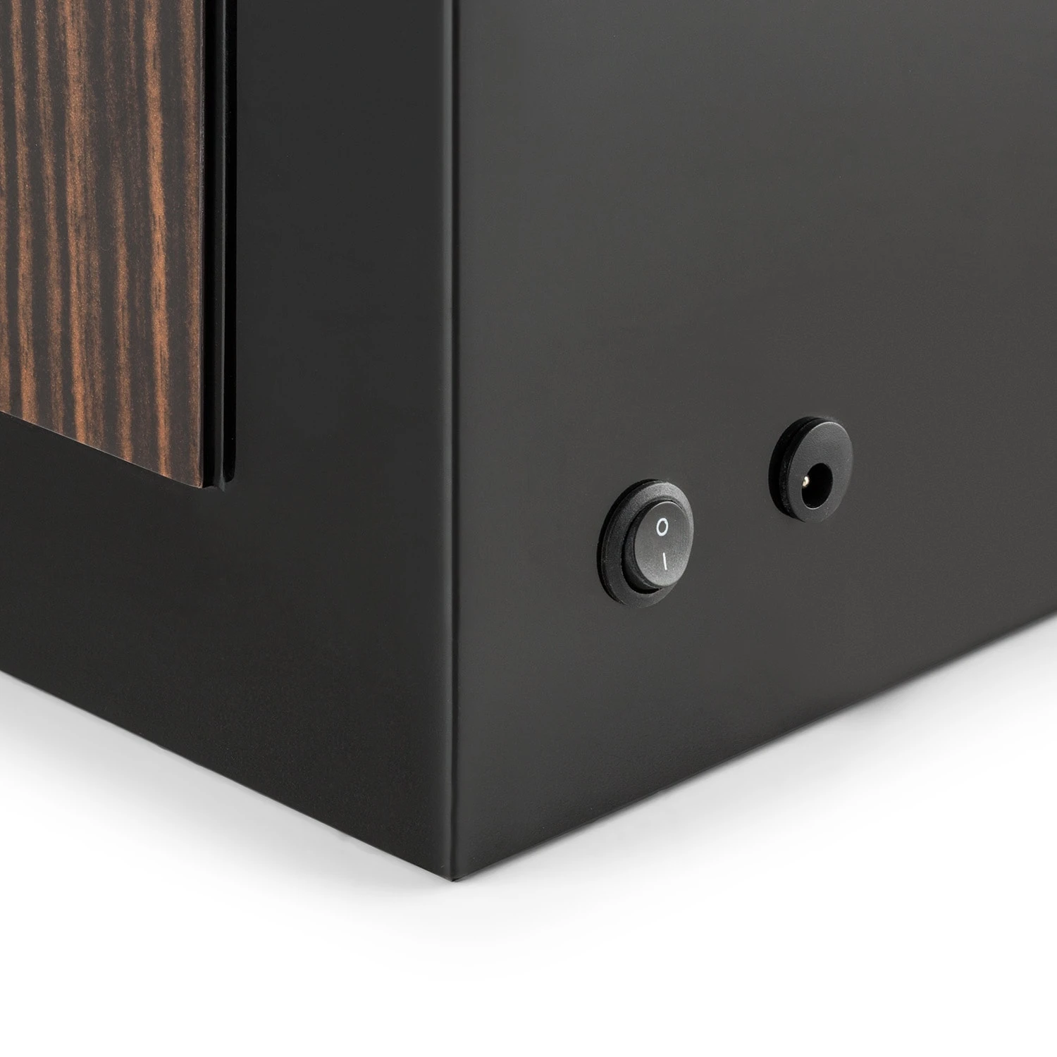 Der luxuriöse, schwarze Schaukasten des Klarstein KlagenfurtUhrenbewegers wartet mit zwölf Aufnahmen mit jeweils einem schwarzen Kissen auf, und setzt jede Uhr elegant in Szene. Das Schaumstoffmaterial stellt sicher, dass sowohl Chronometer mit langem als auch kurzem Armband festen Sitz finden. Die ebenfalls schwarze Samibespannung des Inneren vervollständigt den edlen Gesamteindruck. Eine Kunststofftür schützt die wertvollen Zeitmesser vor Staub und Schmutz, während eine einschaltbare, blaue LED-Beleuchtung für einen guten Einblick ins Innere sorgt. Zwei einfach verständliche, digitale Touch-Displays mit jeweils 6 Tastfeldern dient der separaten Steuerung der zwölf Rotatoren. So lassen sich für jede Aufnahme einzeln Rechts-, Links- oder Rechts-Links-Lauf sowie die gewünschten Umdrehungen pro Tag – bis 2200 – einstellen.