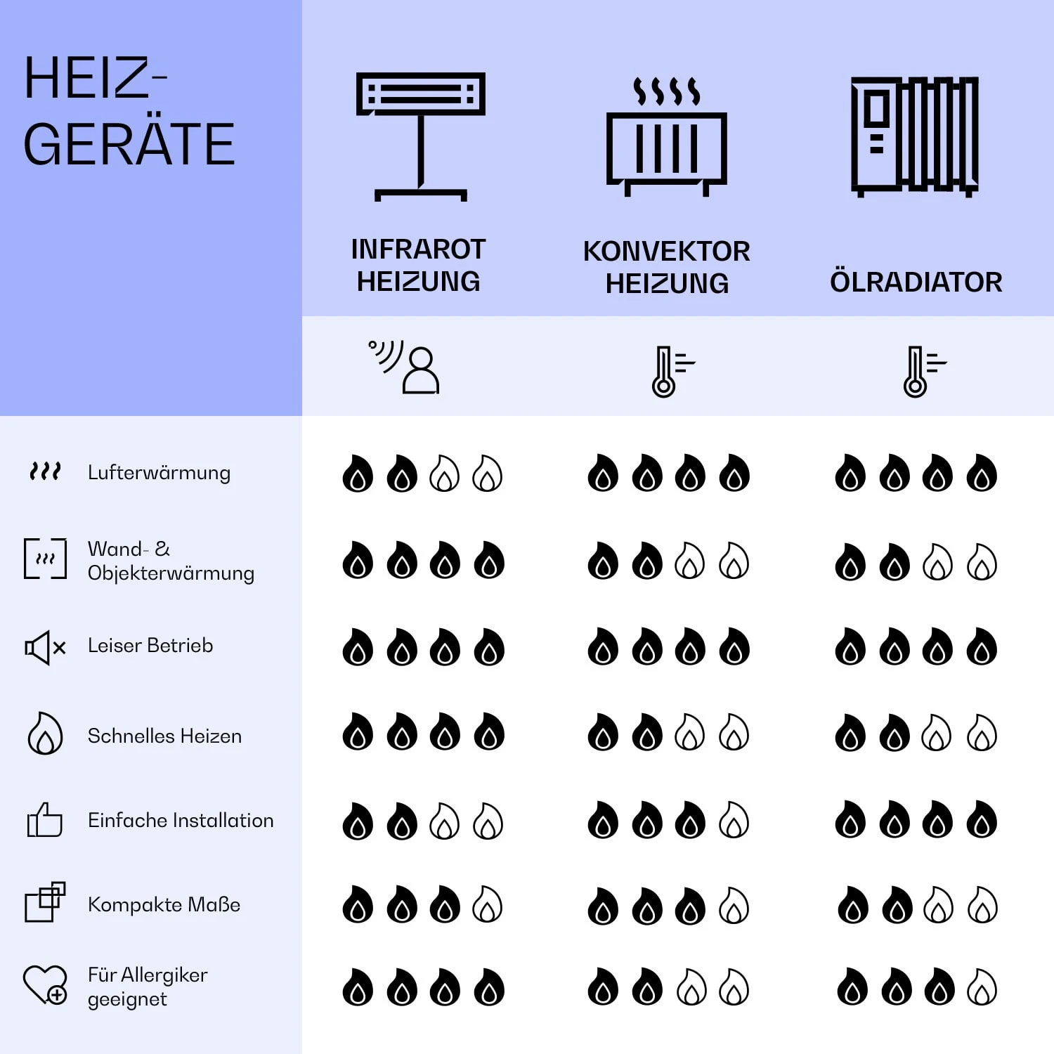 - Betriebsart: Wärmestrahlung (Infrarot-Heizstrahler) / Konvektion