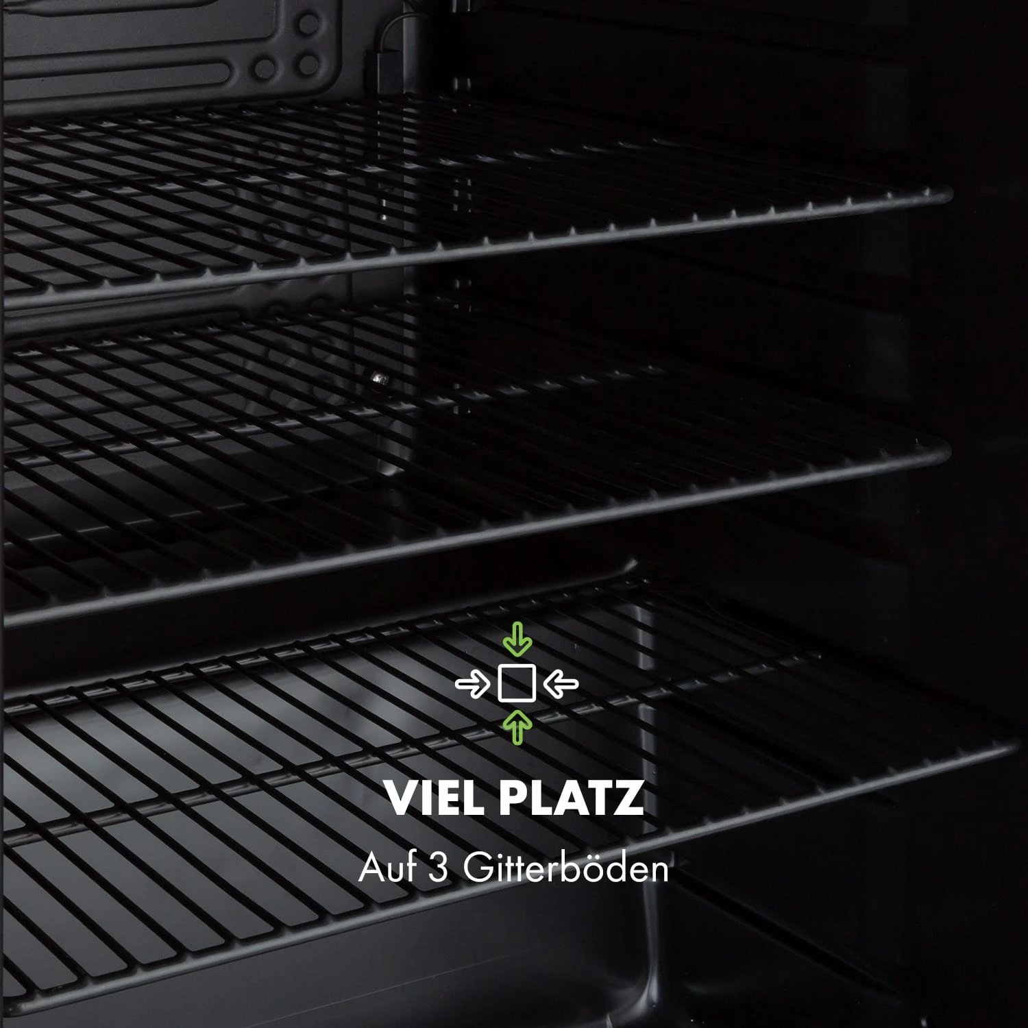 einstellen. Die oberseitige Lampe und die doppelt verglaste Tür sorgen für die nötige Übersicht.
