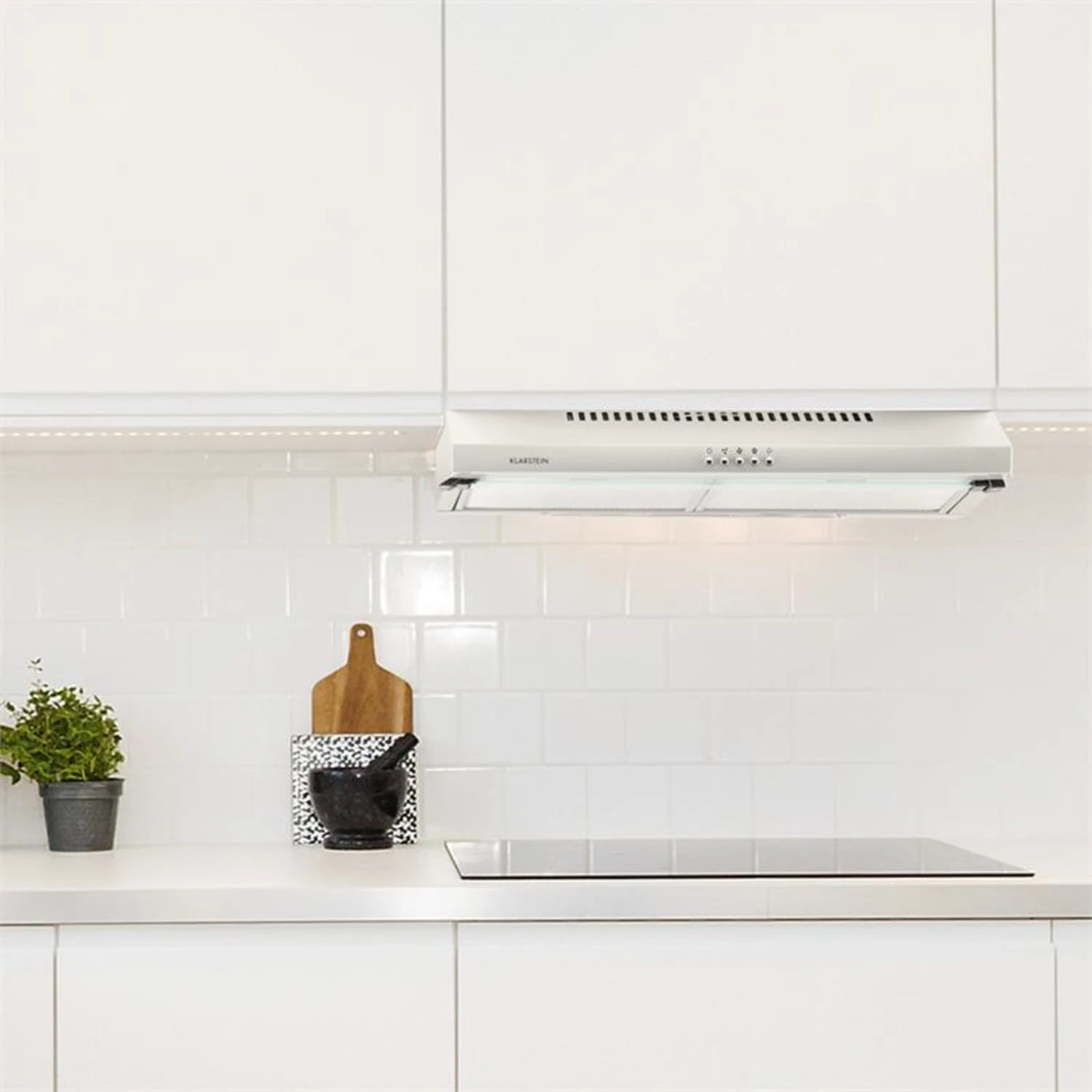 Die Klarstein Purista Dunstabzugshaube sorgt in kleinen Küchen für angenehme Luft und entfernt zuverlässig Essensgerüche, Qualm und Dämpfe von der Kochstelle.