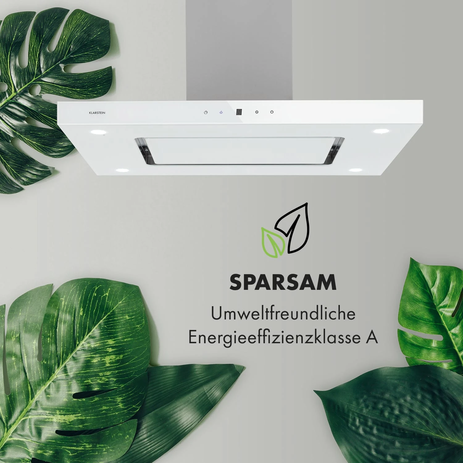 Valeria Inselhaube 90cm 650m³/h Touch EEC A LED Glas Edelstahl -Klarstein 10034974 yy 0009 logo Klarstein Valeria Inselhaube weiss