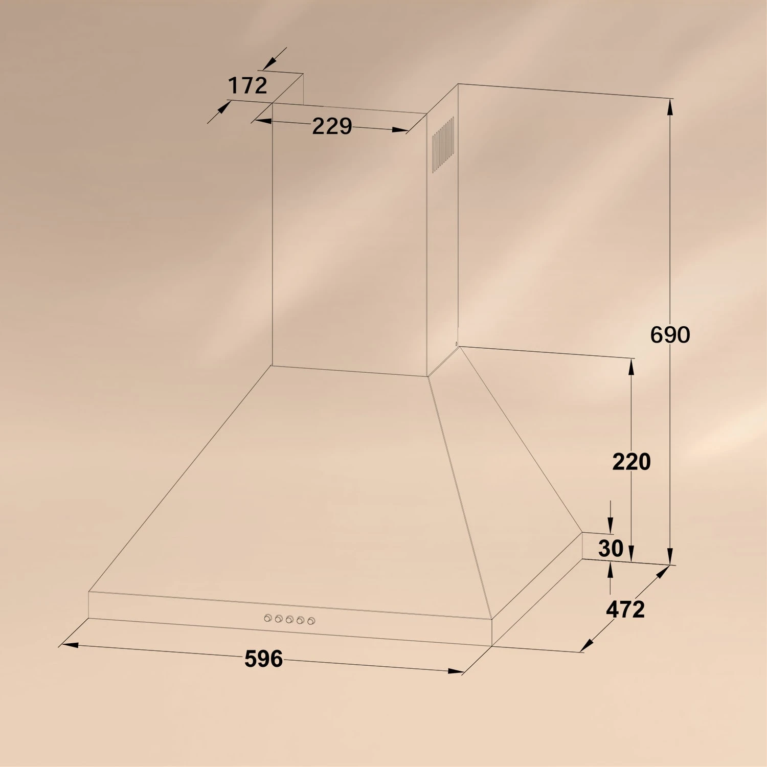 • Maße Dunstabzugshaube (ohne Kaminverblendung): ca. 60 x 30 x 48 cm (BxHxT)