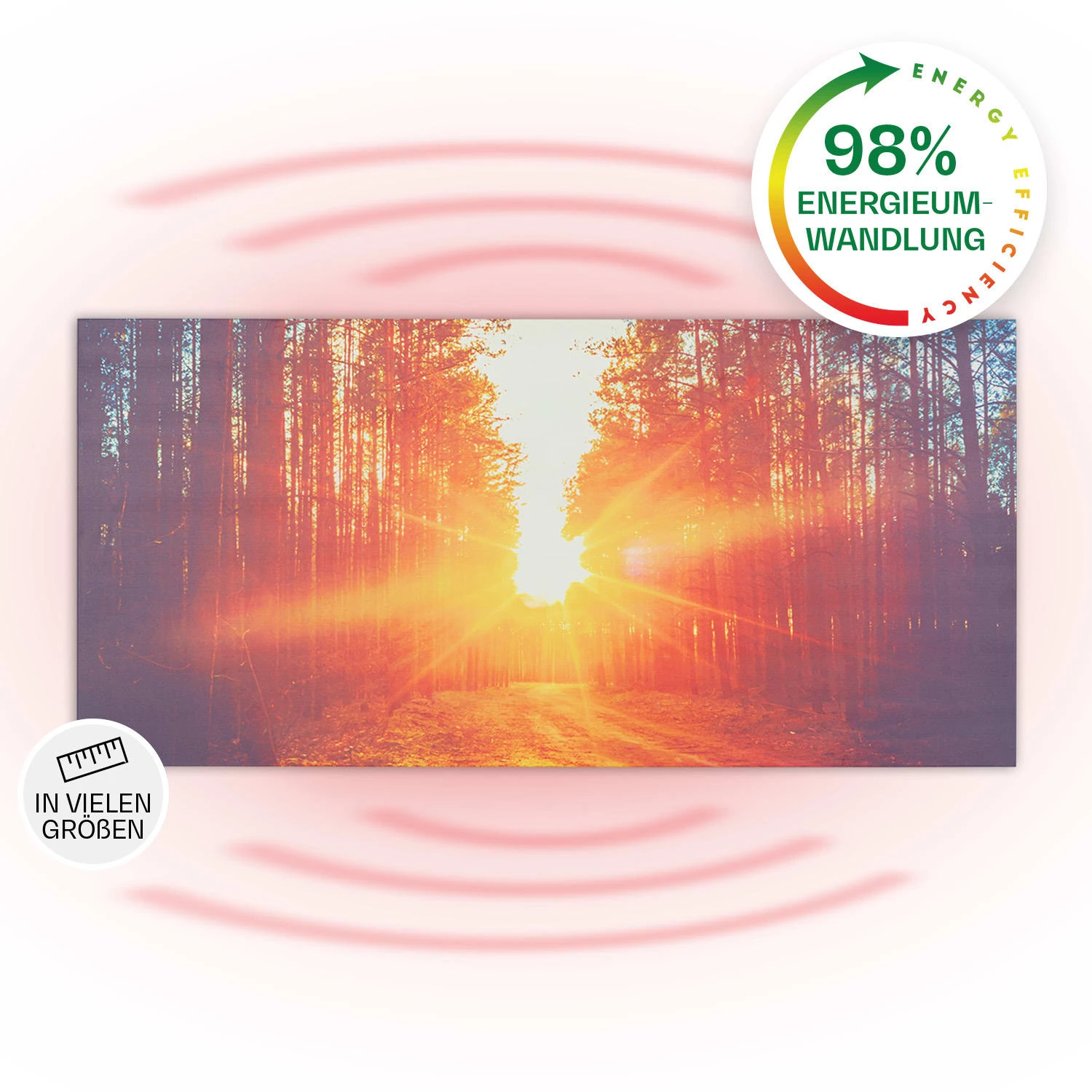 Mit smarter Technik zur Wohlfühlwärme: Die Klarstein Wonderwall Air Art Infinite Infrarot-Heizung mit Bild bringt hocheffizient und fast unsichtbar angenehme Wärme in jeden Raum. Fast wie die Sonne umschmeichelt sie dich zielgerichtet mit wärmender Infrarotstrahlung und ist derweil sehr sparsam. Ganze 98 % der aufgenommenen Leistung werden in Wärmestrahlung umgewandelt. Die revolutionäre Heiztechnik mit Nano-Carbon-Heizelement wird zudem mit Thermostat, Auto-Abschaltung, Wochentimer und Spritzwasserschutz perfektioniert und verhindert, dass sich die Wärme in der Umgebungsluft verteilt. Das wunderschöne, flache Design mit Kunstdruck gibt ihr das Antlitz eines dekorativen Wandbildes.